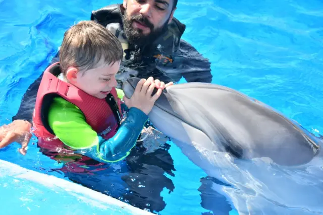 V minulém roce jsme s Edim absolvovali také velmi nákladnou delfinoterapii, která mu výrazně pomohla po psychické stránce. Díky této terapii se u Ediho zmírnila agrese a další náročné projevy autismu. Edi začal být klidnější, veselejší a lépe zvládal své emoce. Zároveň jsme zaznamenali, že s námi začal lépe komunikovat, více reagoval na okolí a navazoval kontakt.