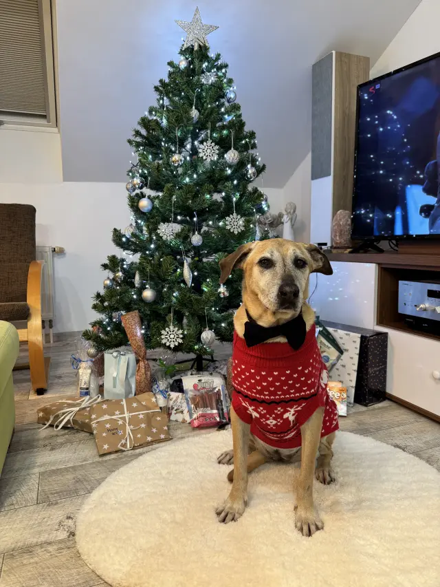 Vánoční focení moc nechápala. Ale pamlsek po něm ano.