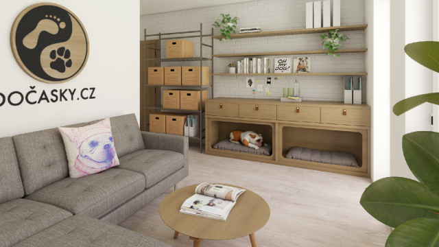 Maják je útočiště, kde najdou bezpečí nově příchozí psí trosečníci. Ošetříme jim zde bolístky, zbavíme je blech, dredů a špíny a ubytujeme je v karanténě. V psí kuchyňce jim připravíme snídani, oběd i večeři se všemi potřebnými výživovými doplňky či léky. Pejska si tu buď vyzvedne původní majitel, který bude moci pod střechou podepsat potřebné dokumenty nebo pokud se pejsek nebude mít kam vrátit, přestěhujeme ho po uplynutí karantény do psího pokojíčku, nebo velké zdravé psy do venkovního kotce. Záleží na individuálních potřebách daného pejska. Psí kuchyňka bude sloužit všem psím obyvatelům Psího ostrova. Bude zde dost prostoru k rozmístění všech mističek, pro skladování granulek, konzerv, speciálních diet, výživových doplňků i lahodných pamlsků. Ošetřovatelé tu pejskům připraví jídlo, které jim pak roznesou nebo rozvezou na jejich místečka. Misky se pak dají jednoduše do myčky, nebo opláchnou ve dřezu pod teplou vodou, aniž by člověku v zimě umrzly ruce jako se to dělo doteď, kdy jsme většinu práce dělali venku. Druhá polovina místnosti bude sloužit jako psí pokojíček. Klubovna, kde si můžou malí pejsci spolu hrát, štěňátka získávat nové zkušenosti a pejsci v rehabilitaci zabavit svoje hlavičky, aby se v době rekonvalescence nenudili a nedělali psí kusy. Psí pokojíček sám o sobě bude sloužit hlavně malým pejskům a těm, kteří budou z jakéhokoliv důvodu potřebovat pobývat ve vnitřních prostorách. Je v něm i dost místa pro klid a odpočinek, až budou mít aktivit dost. Praktická a plně vybavená ošetřovna a koupelna poslouží k vyřešení drobných bolístek našich psích trosečníků. Můžeme si v ní vzít psa na stůl, aplikovat mu antiparazitika, vyčistit uši, zastřihnout drápky a všechny potřebnosti budeme mít po ruce. Třeba Radeček by ji uvítal už teď, dennodenní převazování jeho amputované packy absolvuje na zemi nebo gauči, takže na stole by to bylo jednodušší, pohodlnější a rychlejší. Vana i sprcha jsou nezbytností. Pro padesátikilovou fundlačku Báru s kožními problémy, která koupel potřebuje jako sůl minimálně jednou za týden, je vhodnější sprchový kout, abychom ji nemuseli zvedat. Vedle na střihačském stole bude možné ji vyčesat, ostříhat i vyfénovat. Menší hafany jednoduše vykoupeme v nerezové vaně.