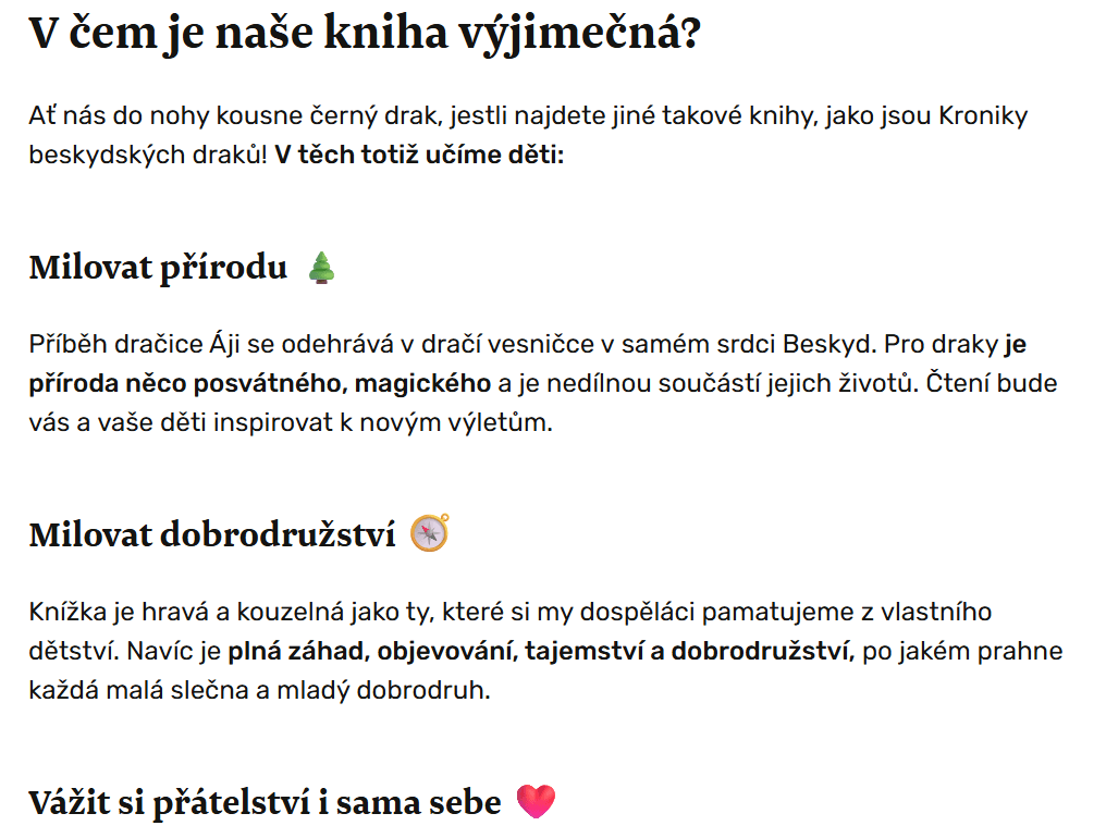 Zakladatelé projektu Beskydských draků už v názvu zapojili přispěvatele (Ukažme dětem…) a v obsahu krásně popsali, čím je jejich kniha jedinečná: