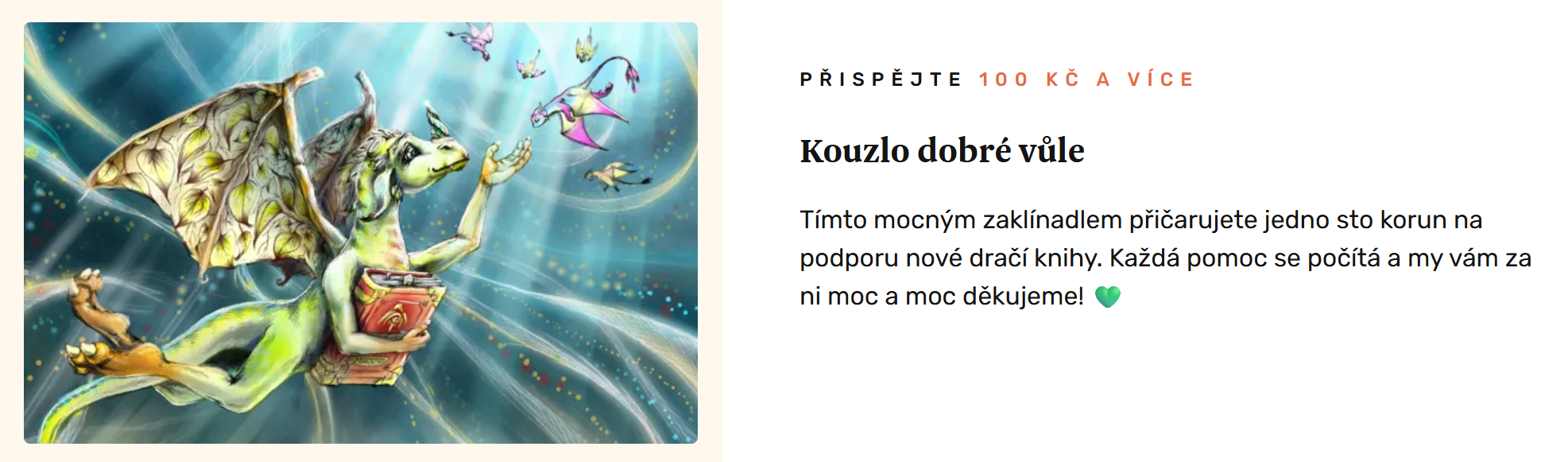 - Jako příklad můžeme uvést knižní kampaň KRONIKY BESKYDSKÝCH DRAKŮ: Ukažme dětem, že čtení je zábava!, kde zakladatelé vybrali více než 1 490 000 Kč.