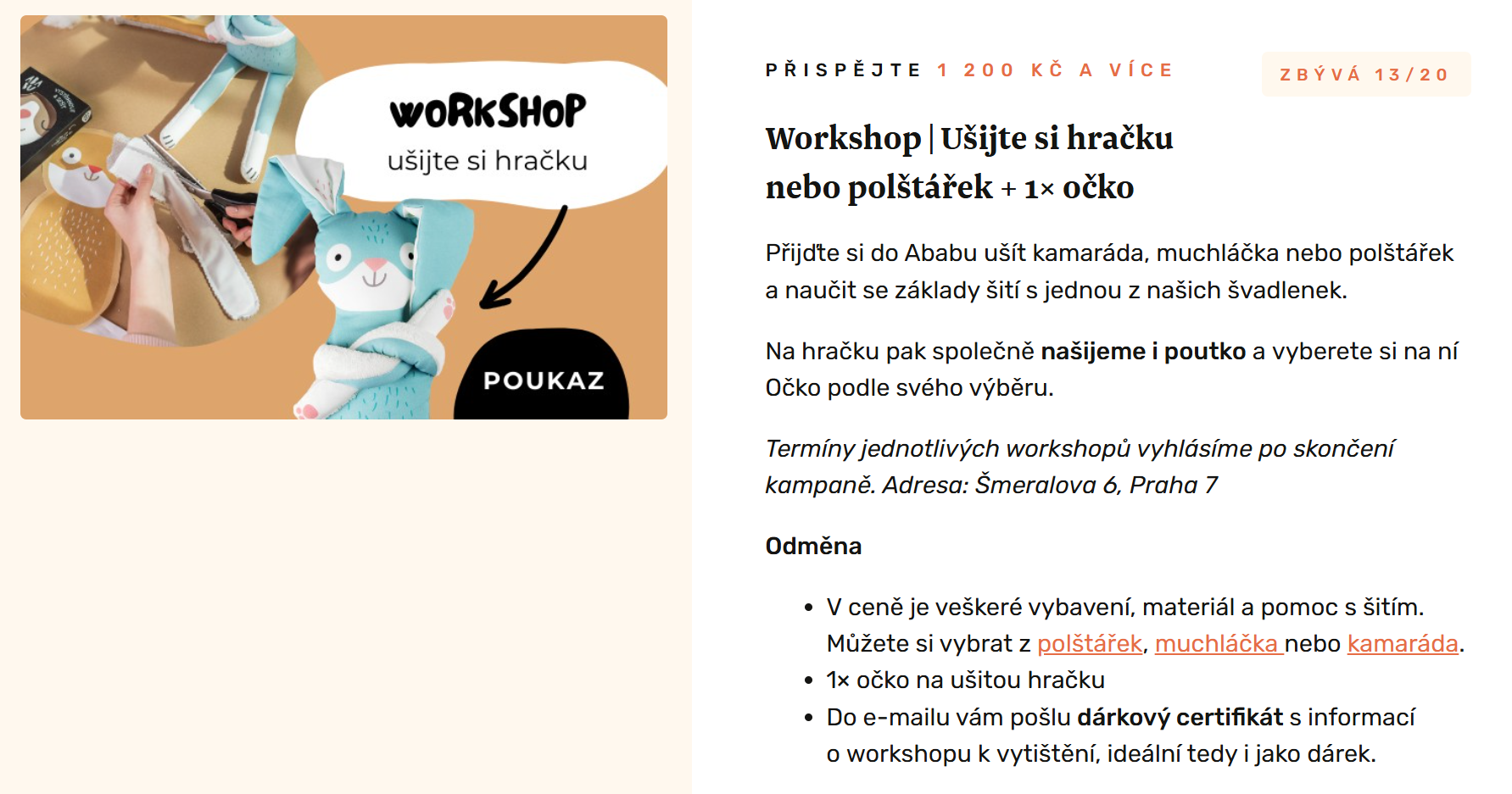 Donio tip: Zařaďte mezi své portfolio odměn i ty symbolické v podobě „Dobrého pocitu“. Můžete také spolupracovat s vašimi partnery, kteří vám do projektu věnují své produkty nebo služby. Zvýšíte tak pravděpodobnost, že každý zájemce o podporu vašeho projektu najde tu „pravou odměnu“ pro sebe.