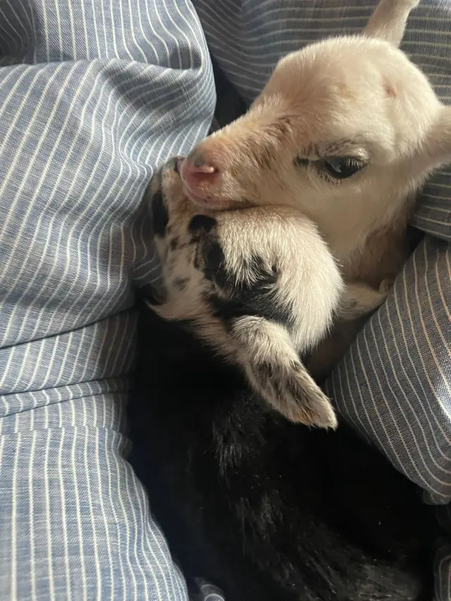 Stádo se nám mezitím zase o něco rozrostlo. Přijali jsme dvě odložená jehňátka – beránky Petra a Pavla. Jsou neuvěřitelně upovídaní a mazliví. Jeden z nich sice zatím vypadá spíš jako kozička, ale věříme, že „do ovčí krásy“ ještě doroste.