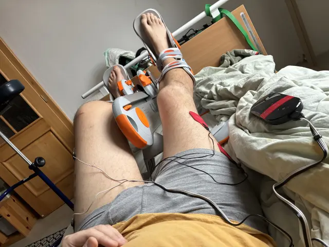 Momentálně po 3 měsících cvičení na motodlaze je v kolením kloubu hybnost v rozsahu cca  100 stupňů.