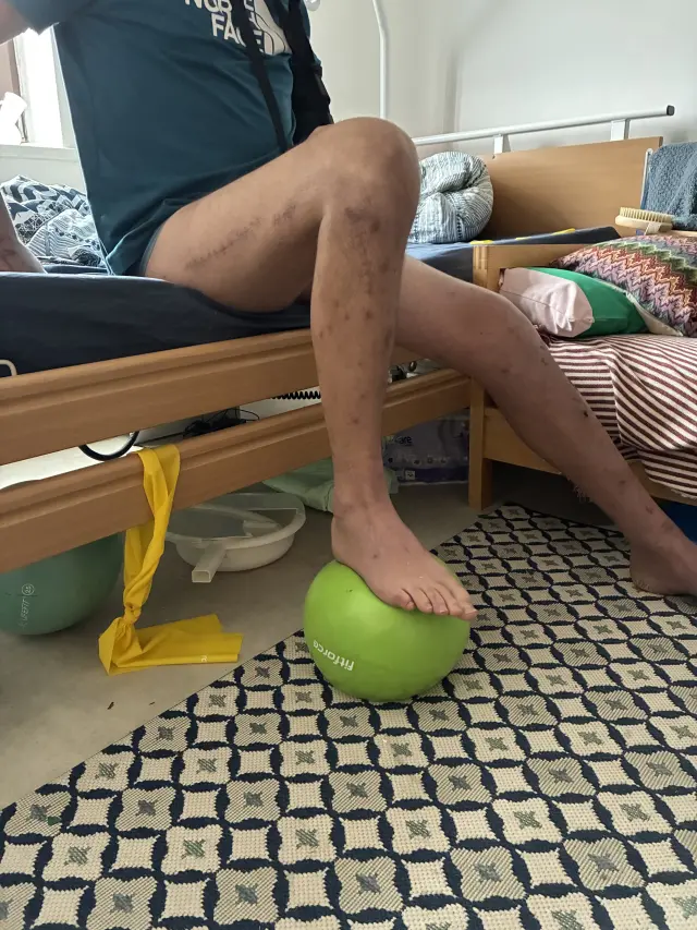 Jěště během hospitalizace se Simon snažil cvičit, dle toho co mu zdravotní stav umožnil. Prvni kroky byly rozpohybovat pravou nohu jelikož byla operována jako první. Tu se zdražilo vrátit do plného rozsahu pohybu.