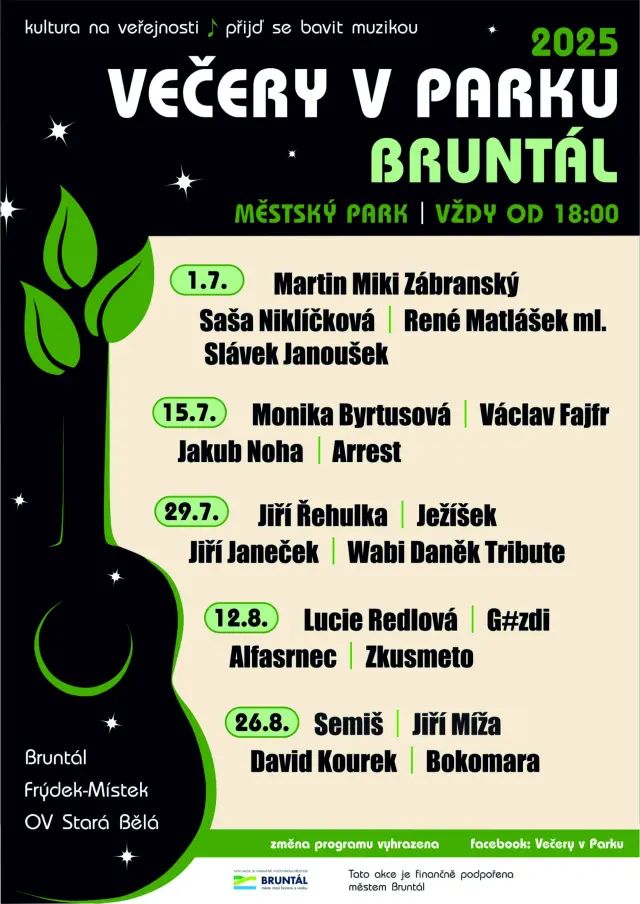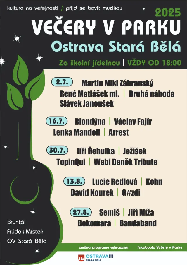 Nechcete-li kupovat zajíce v pytli, můžete si písničky poslechnout na Večerech v parku. V úterý 26. srpna budu hrát v Bruntále a o den později v Ostravě-Bělé.