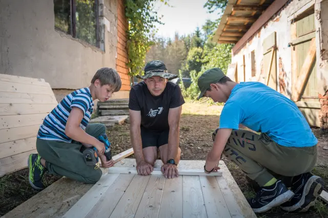 Tábořiště Strojatín: nové venkovní umývárny a krbová kamna
