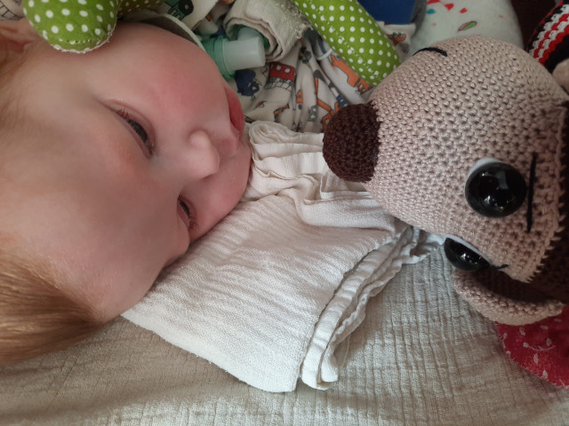 U Tedíka do poslední chvíle nic nenaznačovalo, že by mohl mít potíže. Narodil se v 39. týdnu jako donošené miminko, avšak se zástavou dechu. Následovala řada resuscitací, hypotermie, operativní zavedení tracheostomie, operace žaludku a zavedení sondy pro umělou výživu (PEG). V nemocnici pobyl dlouhé čtyři měsíce, ale po této době, tedy hned, jak to bylo možné, jsme si vzali Tedíka do domácí péče. Ačkoliv to před nás staví spoustu výzev, jsme moc rádi, že Tedíka doma máme. Učí nás sebekázni, soudržnosti, trpělivosti, pokoře, všímavosti, víře a spoustě dalšího. Spolu s námi o brášku pečuje, jak nejlépe umí, i jeho starší sestra.