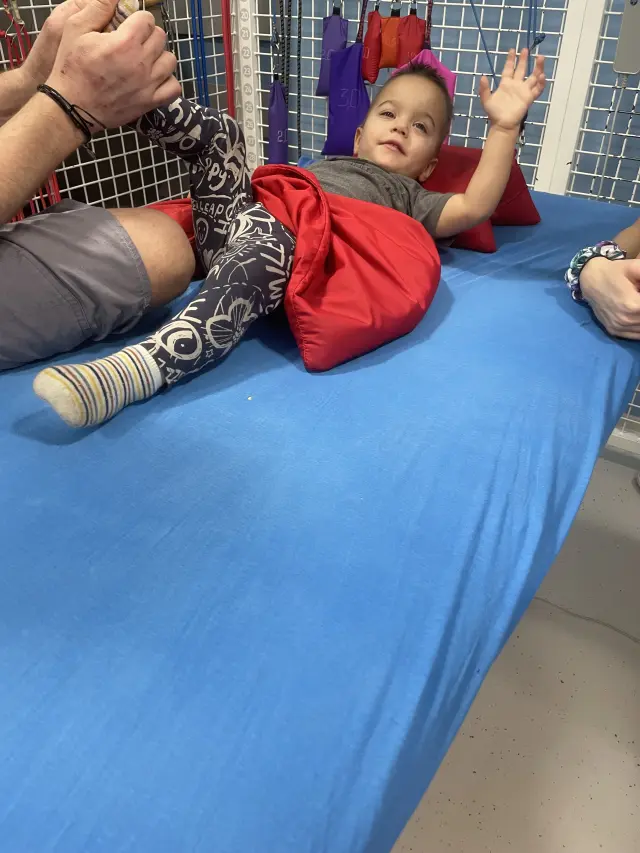Tomášek pravidelně cvičí Vojtovu metodu a snažíme se následky co nejvíce zmírnit pomocí rehabilitací, ergoterapie a dalších terapií.
