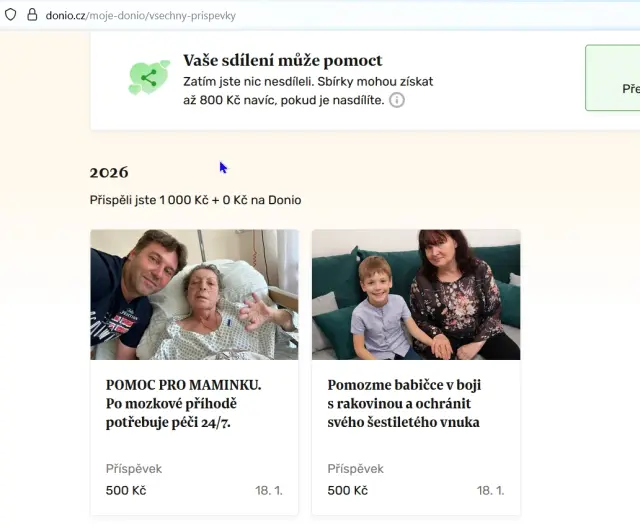 2. Podporoval jsem zde na Donio sbirku a projekt 6 lidem