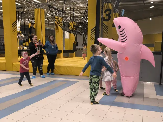 Děti měly program skákání na trampolínách v HOP Aréně, kde se všichni náramně vyblbli. Pak následoval další program Buble show, do kterého byly děti zapojeny a vytvářely z nich různá kouzla. Taktéž si to vyzkoušela i paní Provazníková a její syn. Díky paní Zuzaně zde bylo i jako zpestření pro děti malování na obličej.