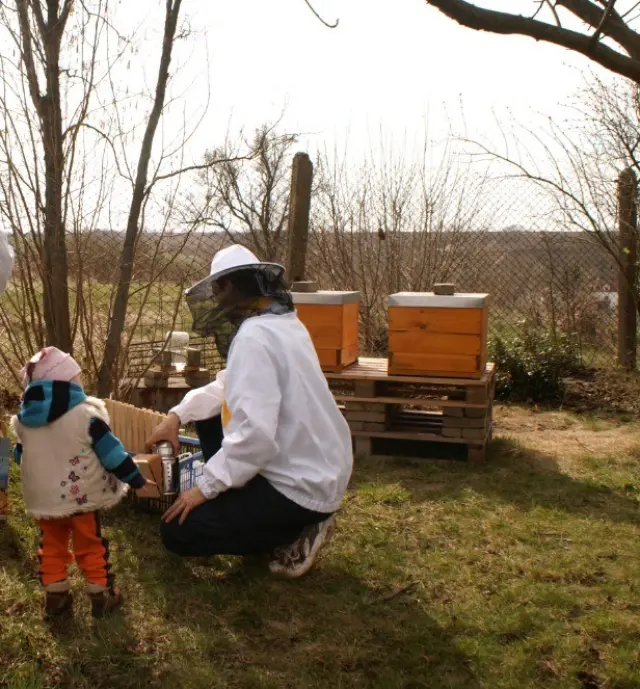Tady jsem já i s taťkou, když jsem byla poprvé u včelek. V té době jsem jen pilně přihlížela😊