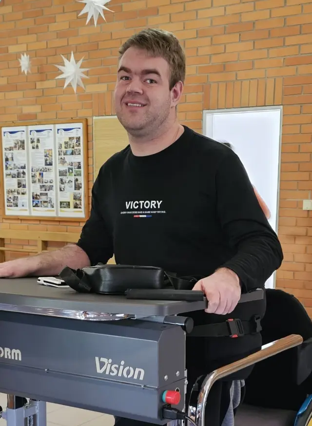Moc by mu pomohl vertikalizační systém pro postavení těla a zároveň zapojení svalů potřebných pro stoj a chůzi. Moc vás tímto všechny prosím o finanční pomoc. I malé gesto od každého z vás, znamená pro Ráďu obrovský krok kupředu. Pomozte mi tohoto anděla s obrovským srdcem postavit na vlastní nohy.