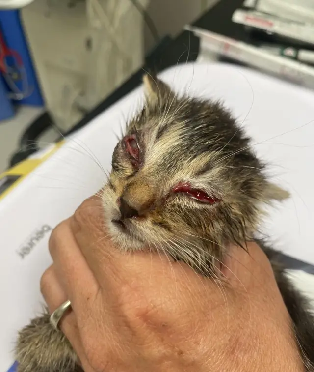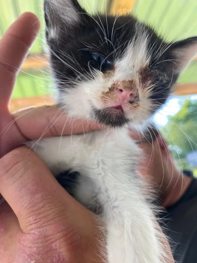Tohle je Tomášek, nejmenší koťátko z celého nalezeného vrhu, krátce po příjmu. Kocourek, který si vytrpěl neskutečnou bolest. Dnes již vypadá jinak, ale nejsme s jeho léčbou zdaleka u konce. Bohužel 1 očičko se nám nepovedlo otevřít. Tomáškovi jsme museli opakovaně rozřezávat obě očička, protože velmi rychle zarůstala víčka a pod nimi se tvořilo velké množství hnisu. Povedlo se nám 100% zachránit 1 oko a stav druhého stále řešíme. Nyní jej čeká poslední chirurgické otevření a dle jeho stavu se přistoupí k další léčbě, nebo jeho odstranění. Stále se také potýkáme s infekcí v těle, kdy jakmile vysadíme ATB, okamžitě začne pšíkat. Mimo očního zákroku jej tedy čeká pokračování v diagnostice a léčba.