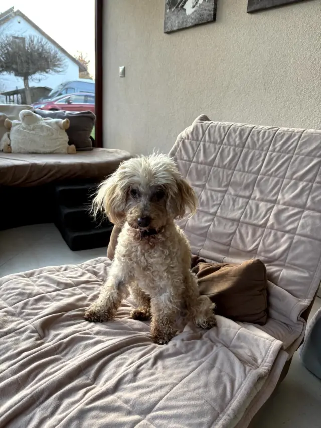 Korinka je typická pudlička. Milá a mazlivá, ale když se jí něco nelíbí, umí se za sebe postavit:-).