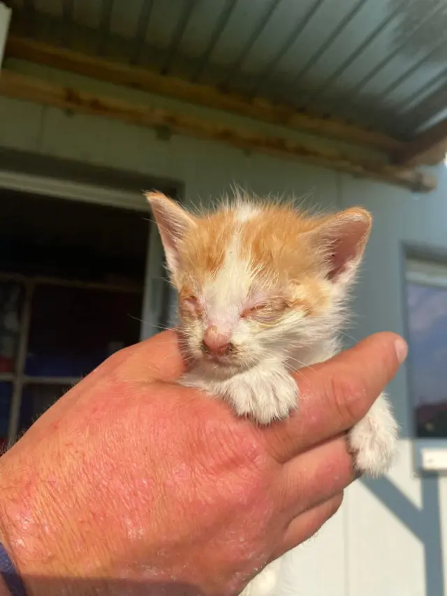 Představujeme prvního příjemce vaší pomoci, Tomáška. A zároveň typický příklad zdravotního stavu nalezeného kotěte od toulavé kočky: