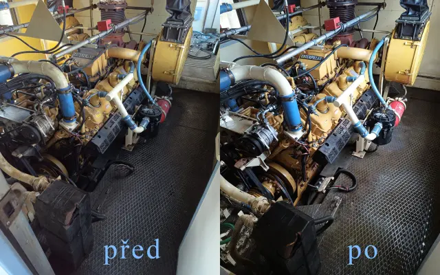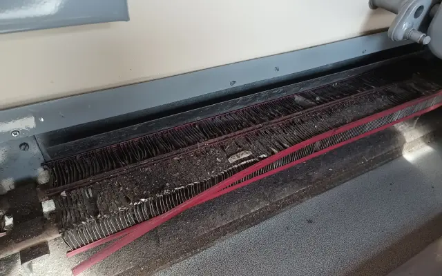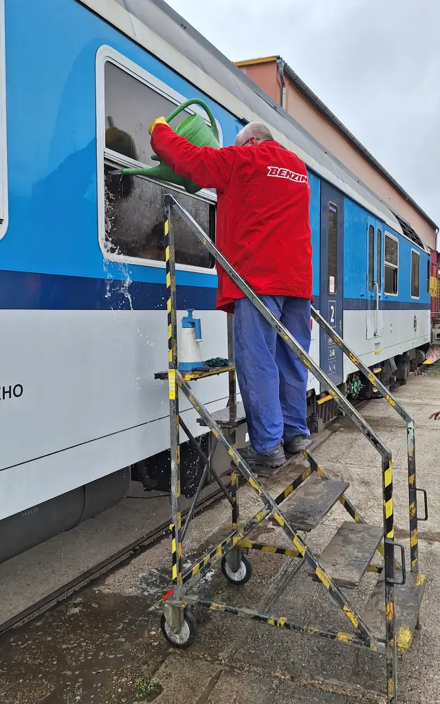 Čištění topení v části pro cestující.