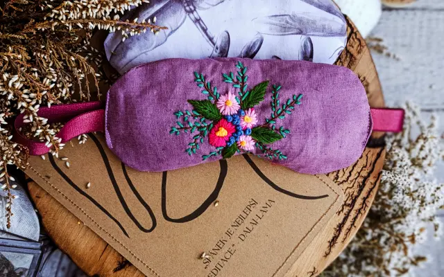 🌠 Vyšívaná lněná maska na spaní (s levandulí) od Tamarchi