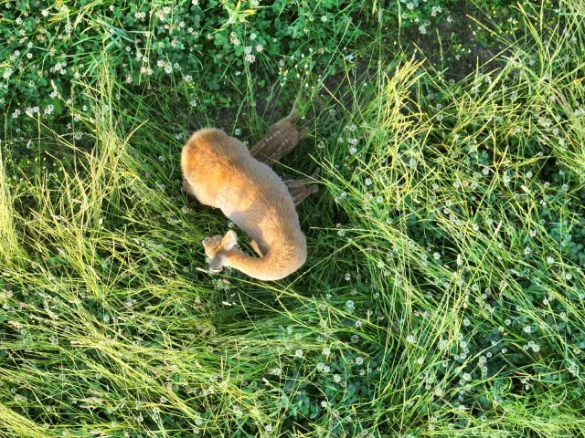 Termovize dokáže odhalit živé tvory podle rozdílu teplot. I mládě ukryté v husté trávě se na displeji dronu zobrazí jako jasný teplý bod. Takové zvíře následně bezpečně přeneseme do úkrytu nebo ho ochráníme zakrytím a místo označíme tak, aby ho sekačka objela. Bez termovize by tato mláďata zůstala lidskému oku zcela neviditelná.
