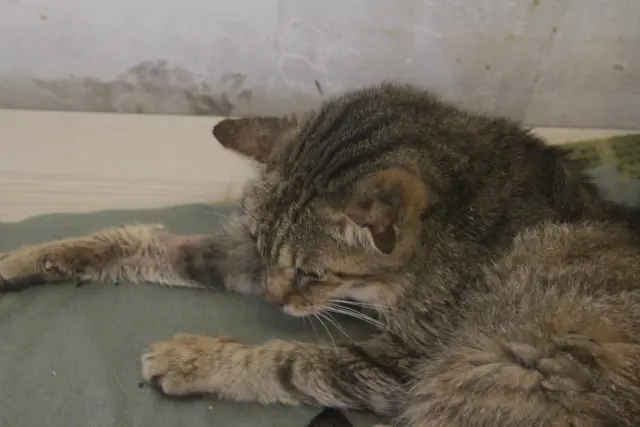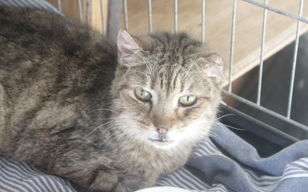 Žanetku jsme přijali v létě loňského roku. Zubožená kočička se potulovala u blízké benzinky. Nebylo jasné, jak dlouho venku byla, a jestli ji tam někdo vyhodil, nebo se tam dostala v zoufalé snaze o to, najít potravu. Žanetka vážila pouhé 2 kila, byla hubená a špatně se jí dýchalo. Navíc pusinku měla plnou boláků, mysleli jsme, že to je starší kočička se špatnými ledvinami. Na veterině se ale ukázalo, že ledviny má v pořádku, takže trpí kvůli jinému problému. I přes její zoufalý stav měla Žanetka chuť do života. Je starší, takže hodně spinká, ale hodně se mazlí a jí, jako kdyby to bylo její poslední jídlo. Kvůli staré infekci navíc Žanetka dýchá jen napůl – má zkolabovaný jeden plicní lalok.