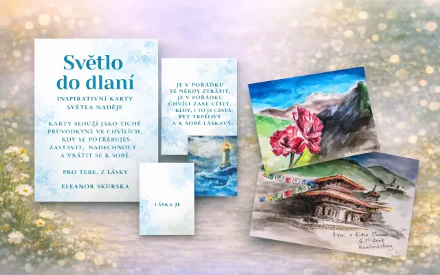 - výrobu doprovodných materiálů (záložky, karty Světlo do dlaní, plátna, barvy)